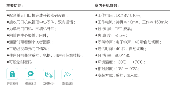 整機尺寸:7寸時尚室內(nèi)分機